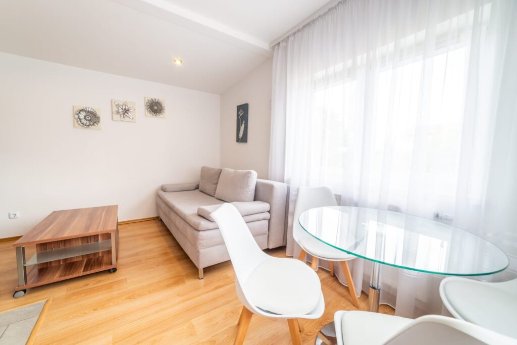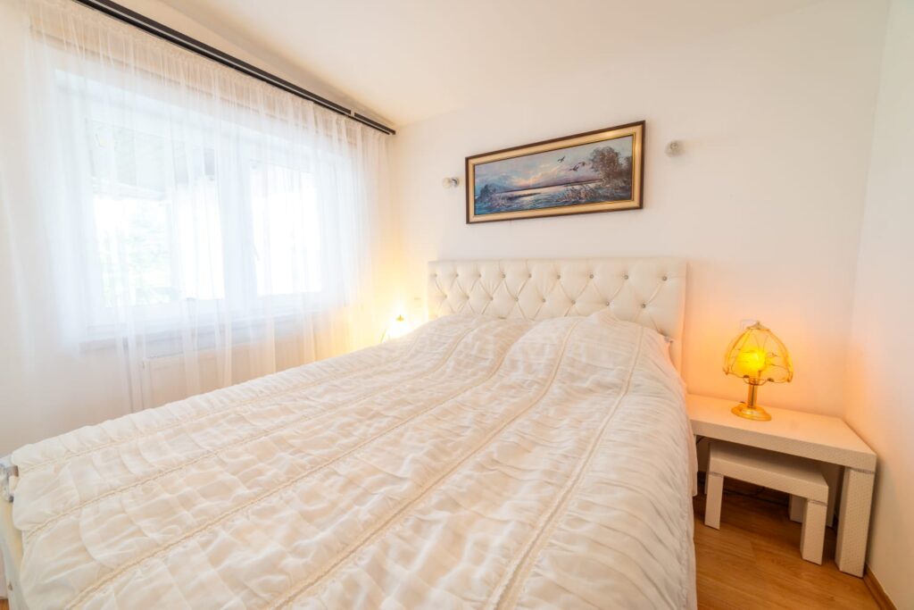 Poszukujesz apartamentu w Mikołajkach, który bez problemu pomieści całą Twoją rodzinę lub przyjaciół? Ta oferta jest idealna dla Ciebie! Apartament posiada sypialnię oraz przytulny salonik z aneksem kuchennym. W obydwu pomieszczeniach znajdują się wygodne łóżka z kompletami pościeli. Dla maluchów do lat 3 z przyjemnością dostawimy łóżeczko i to absolutnie gratis.