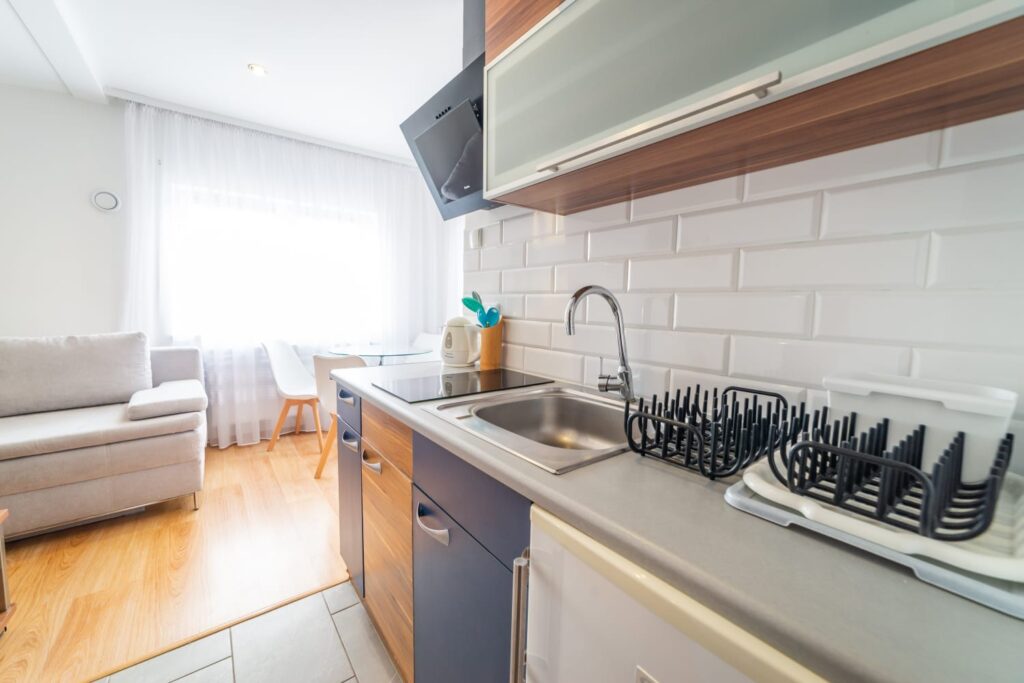 • Ankes kucheny (kuchenka dwupalnikowa, zlew, lodówka, czajnik, komplet naczyń)